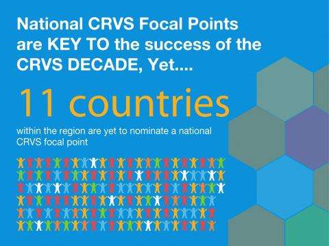 Member States recognized the importance of having a National CRVS focal point to ensure communication between CRVS stakeholders in the country as well as ESCAP and development partners. The role of the national CRVS focal points is to liaise with the ESCAP secretariat to report and monitor progress in implementing the Regional Action Framework, on behalf of all CRVS stakeholders in a country. The National CRVS focal points therefore play a crucial role in the implementation of the Regional Action Framework.