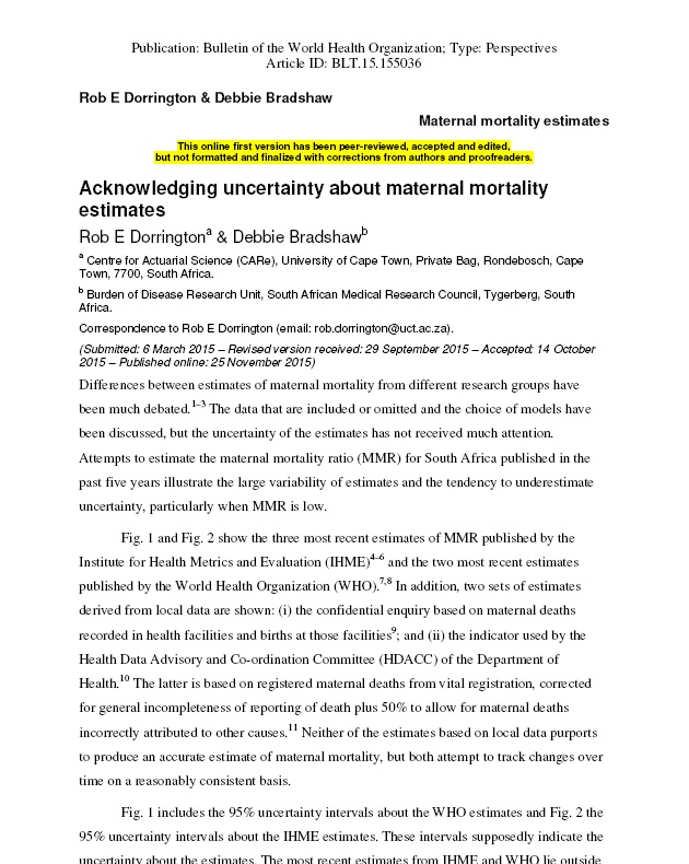 The article illustrates the large variability of estimates and the tendency to underestimate uncertainty in South Africa and conclude that unless a country has a nationally representative system to track maternal deaths, there is likely to be a great deal of uncertainty about maternal mortality.