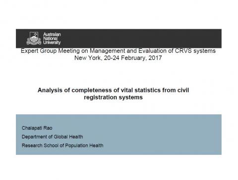 Australian National University's presentation made at the Expert Group Meeting on "Methodology and lessons learned to evaluate the completeness and quality of vital statistics data from civil registration“, New York, 3‐4 November 2016.