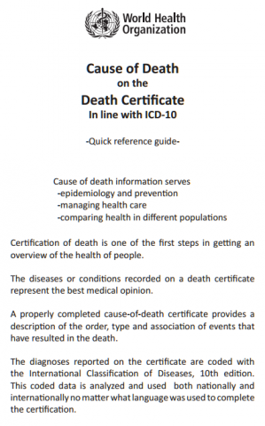 Cause of death on the death certificate in line with ICD-10, Quick reference guide