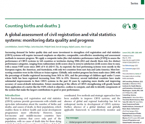 A global assessment of civil registration and vital statistics systems. monitoring data quality and progress
