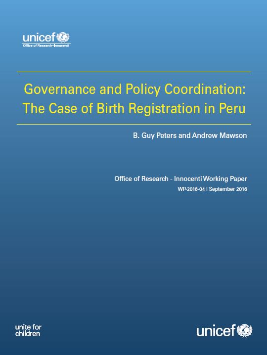 This research, the second of two case studies, explores coordination through the lens of civil registration and vital statistics, with particular reference to birth registration in Peru. It focuses on the role that coordination can play in making birth registration function effectively. While the capacity of governments to deliver the function of birth registration is central to this paper, the role that understanding coordination can play in improving public services is examined, especially services for children. The capacity to register the births of children is a long-standing function of governments, and can be seen as a test of government effectiveness. In Peru, backward mapping showed that the trails from local and district registrars to the government registration organization (RENIEC) stopped almost immediately. This seems to point towards the centralized structure and top-down approach of RENIEC; to sustain its achievements to date and to reach the final three per cent of unregistered births it should consider incentivizing and empowering local and community administrations.