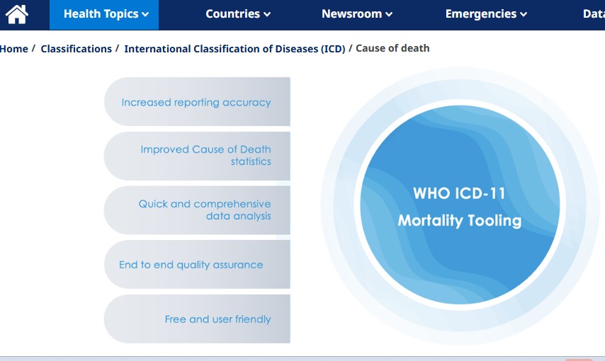 WHO lists here ICD guidelines and tools for cause of death recording and reporting.