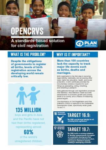 Plan International Australia proposes developing a standards-based software solution to provide for civil registration and population data needs in low resource settings. The open source CRVS platform will be free, fully compliant, and adaptable for different country contexts in Asia and the Pacific. The software will be easy to deploy, user-centric, and require minimal skills for customisation, maintenance and support.