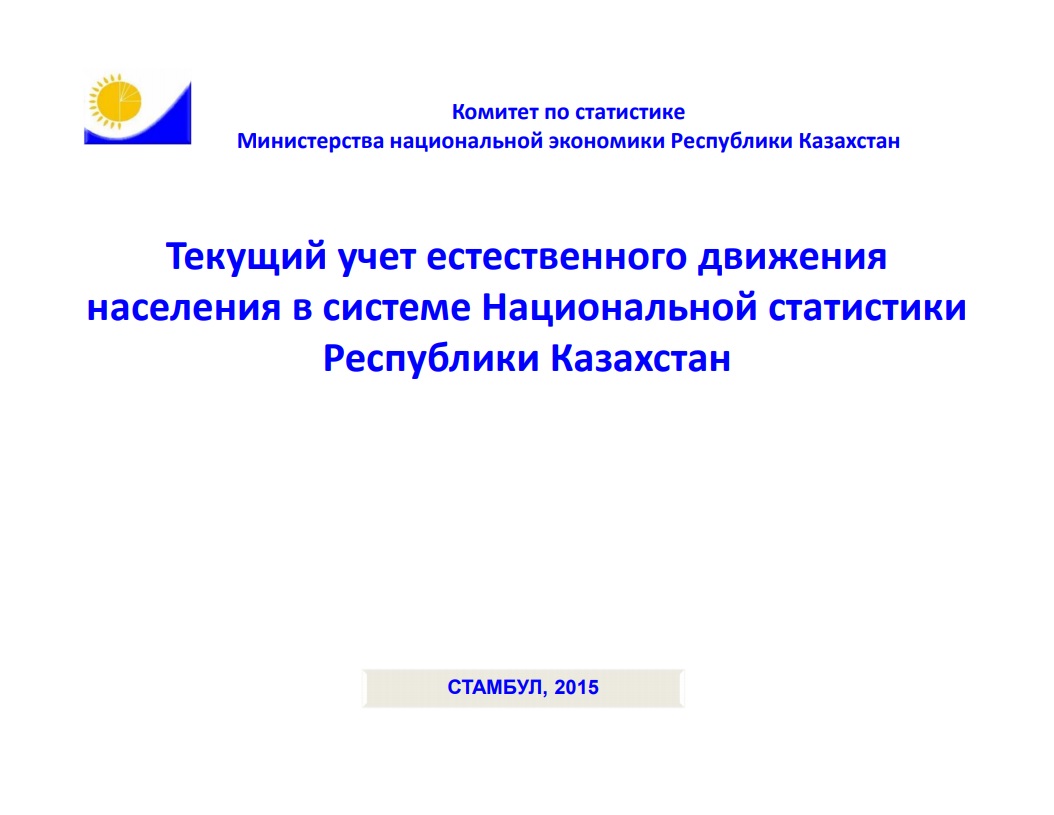 Presentation by the Committee on Statistics Ministry of National Economy of the Republic of Kazakhstan to the Sub-regional Asian workshop on applying principles and recommendations for implementing the Regional Action Framework for strengthening CRVS Istanbul, Turkey, 15 -18 September 2015.