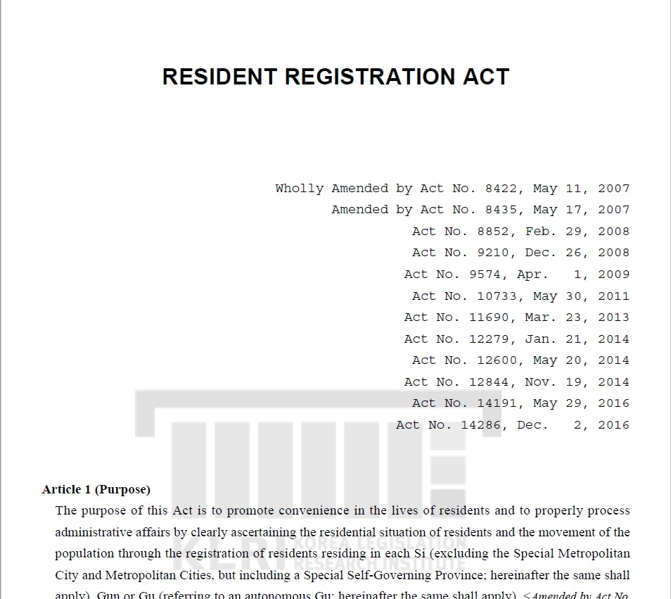 Republic of Korea, Resident Registration Act