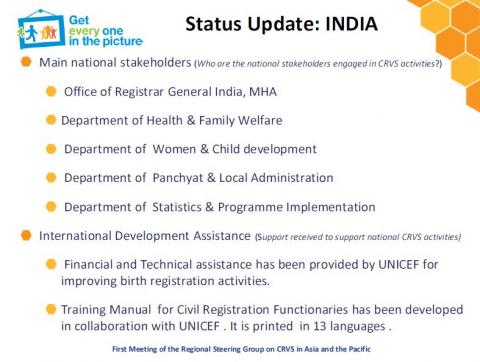 India's country presentation made at the 1st Regional Steering Group for Civil Registration and Vital Statistics (CRVS) Meeting, Bangkok, 28-30 July 2015