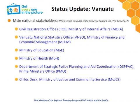 Vanuatu's country presentation made at the 1st Regional Steering Group for Civil Registration and Vital Statistics (CRVS) Meeting, Bangkok, 28-30 July 2015