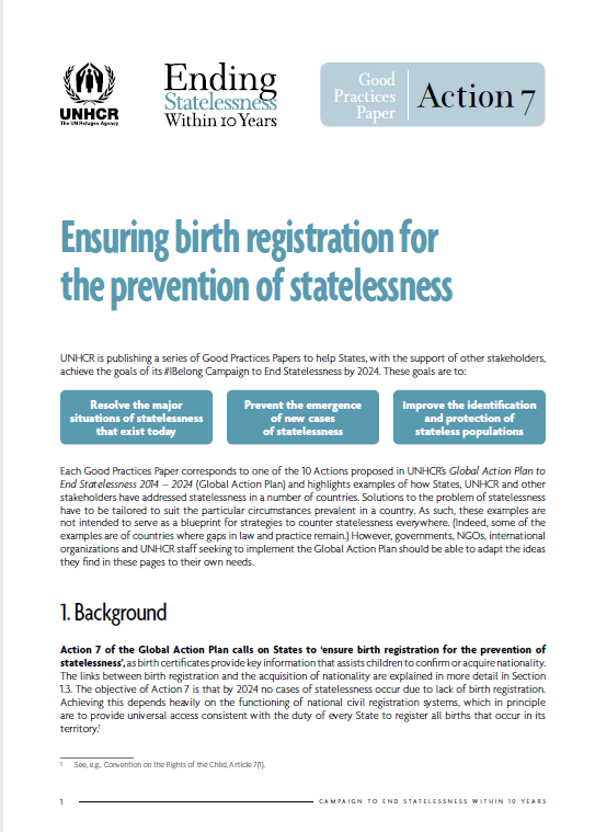 UNHCR Good Practices Paper – Action 7: Ensuring birth registration for the prevention of statelessness